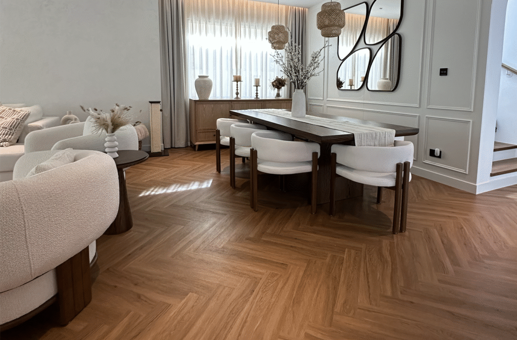 Our wood flooring solutions are designed to enhance modern interiors with timeless elegance and durability. Available in classic straight plank and sophisticated herringbone patterns, our flooring adds character, warmth, and visual depth to residential and commercial spaces.